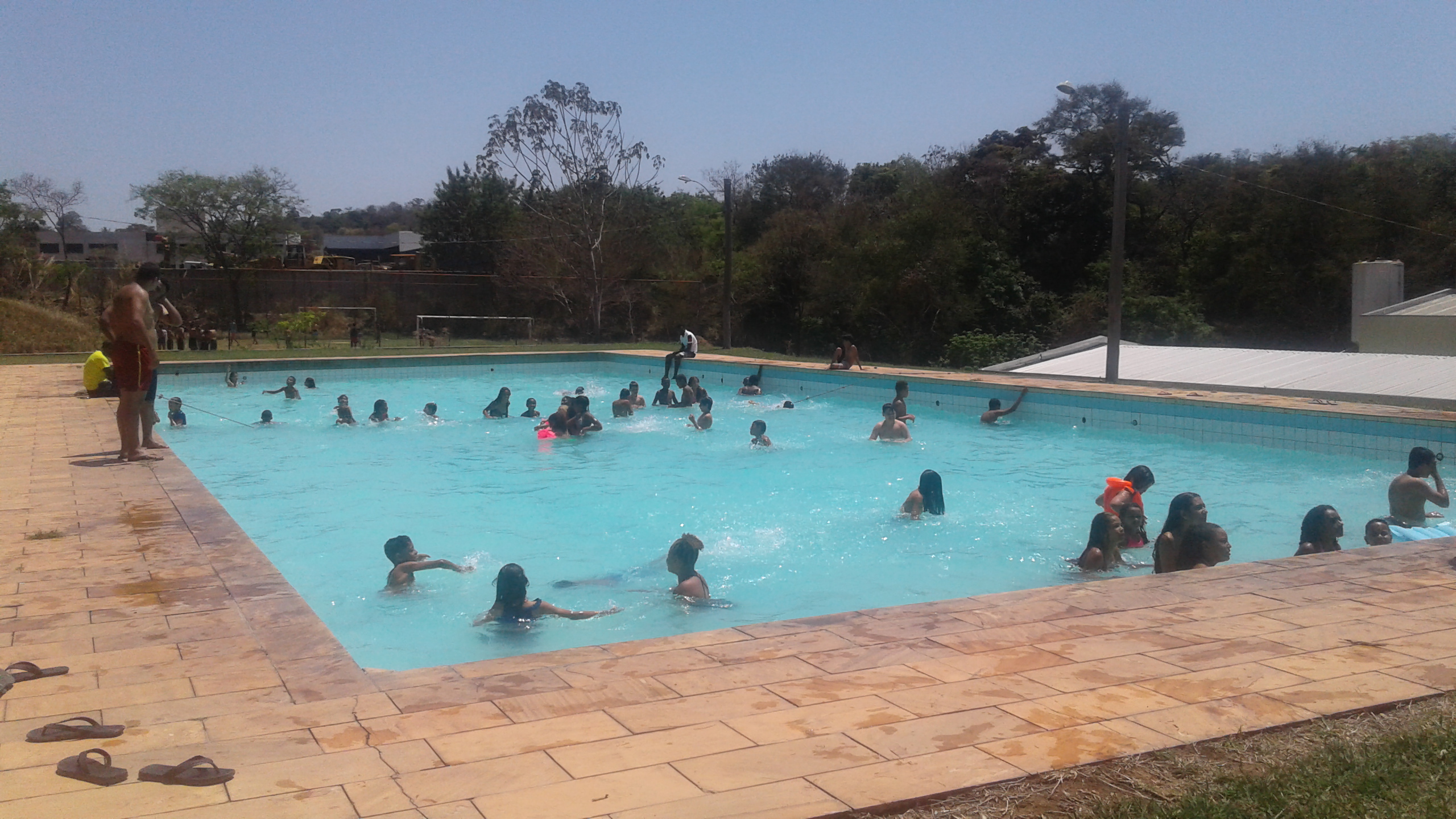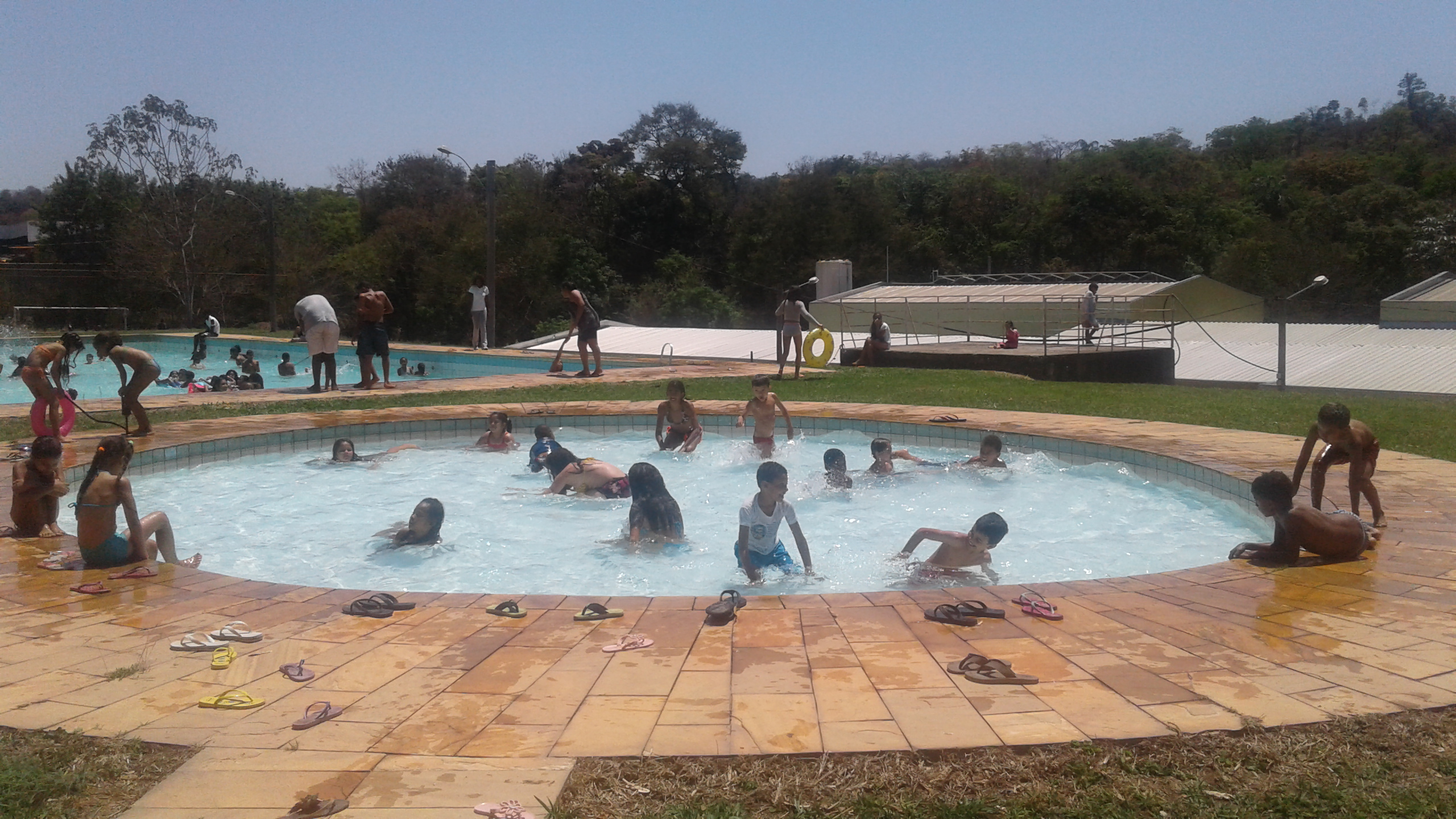 Depois do momento de concentração e tristeza, eles e elas puderam, enfim, se alegrar com cânticos, leitura e reflexão sobre o amor de Jesus pelas crianças, muitas fotos e um dia inteiro de piscina, brincadeiras e comilança como toda criança gosta.