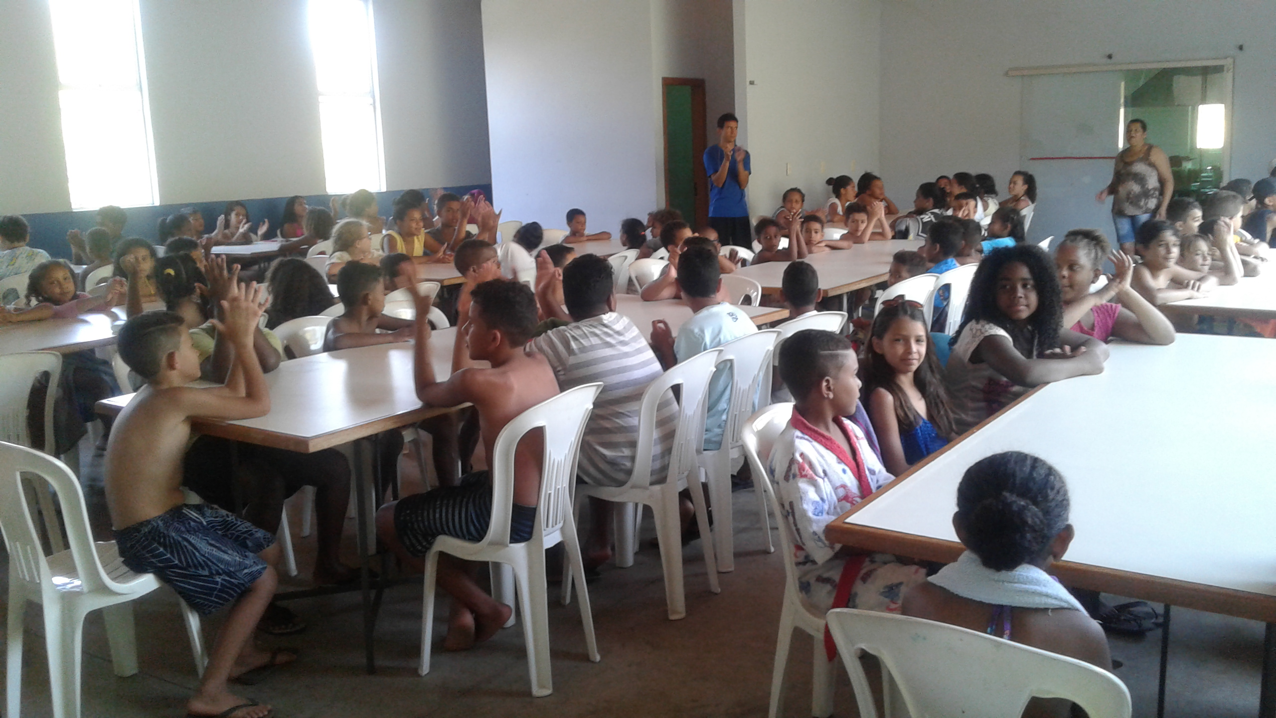 Na Semana da criança (outubro 2017), os Projetos Sombra e Água Fresca do Bairro Liberdade (em Ribeirão das Neves – MG) e São Gabriel (em Belo Horizonte – MG) reuniram cerca de 110 crianças e adolescentes e seus educadores e educadoras, bem como seus/suas voluntários/as, além de bombeiros e motoristas para celebrarem o Dia da Criança no Acampamento Geresim, gentilmente cedido pela Igreja Metodista Central de Belo Horizonte MG.